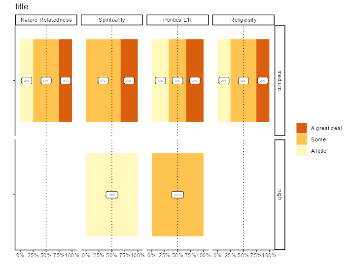 facet_names <- c(`Q51_bin` = "Nature Relatedness", `Q52_bin` = "Spirituality", `Q57_bin` = "Religiosity", `Q53_bin` = "Politics L/R", `low`="low", `medium`="medium", `high`="high")