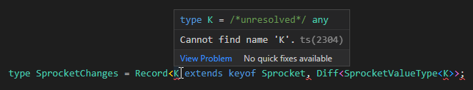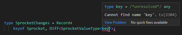 type SprocketChanges = Record<keyof Sprocket, Diff<SprocketValueType<key>>;