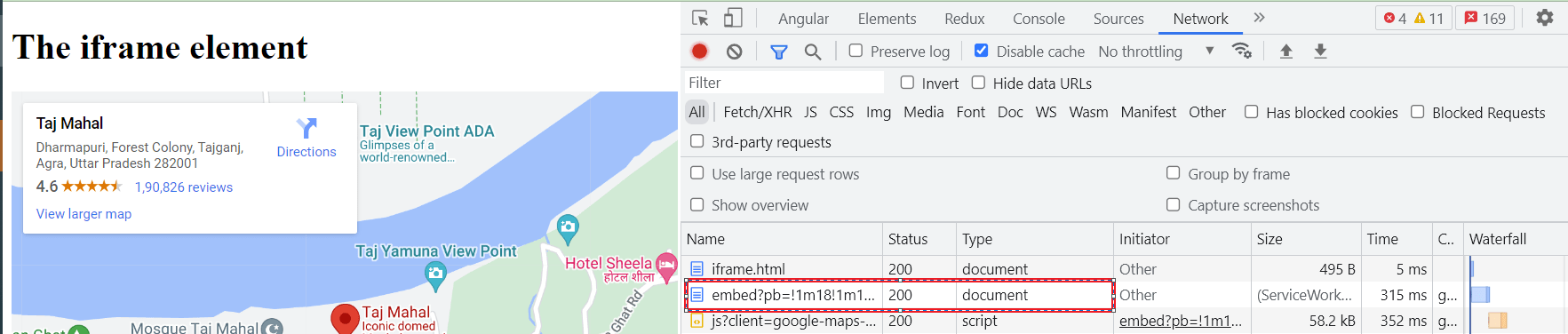I am trying to understand how iframe calls the URL specified in its src attribute. When we look at the network tab in Chrome developer tools, the Type column shows as "document".