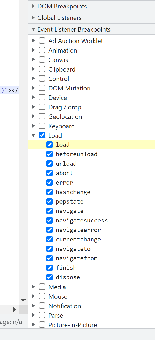 - Chrome Developer Tools’ built-in "Event Listener Breakpoints".