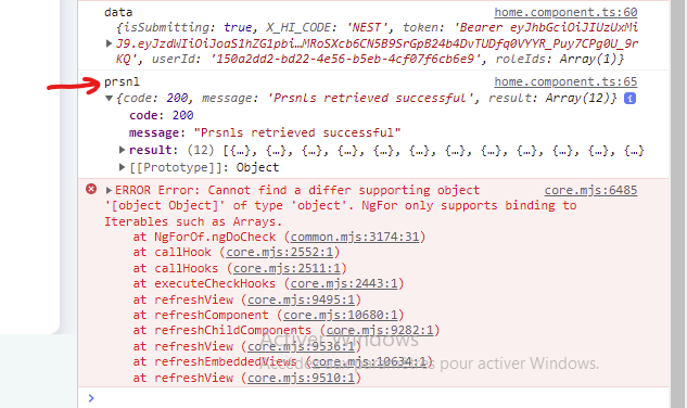But doing this cause the project to not compile, and it only compiles when I remove the KeyValuePipe importation from app.module.ts, and I realize that the subscribe() function does not console.log this.prsnl value. How can I then make this work with response being object of object and display it inside the table. I will really appreciate your help to tackle this impedement. Thanks in advance.