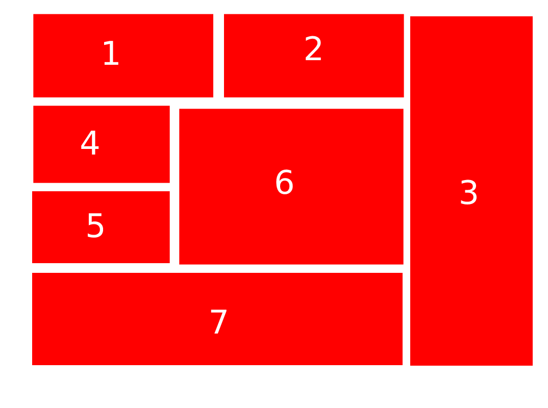 doing horizontal divs such as 1,2 ,4, 5 ,7 is udnerstandable, but what about div 3&6 that cover multiple rows.