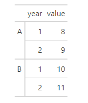 In the table below, how can I but the groups in an additional column on the left (without duplicating the "A" and "B"), so that the table only has 4 rows instead of 6?