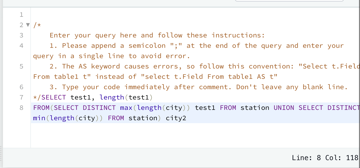I’m completing a HackerRank challenge, but the documentation says I should not use the AS keyword: