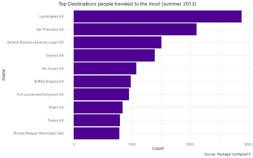 labs(title = "Top Destinations people traveled to the most (summer 2013)",