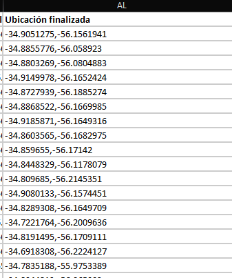 df[["lat", "lon"]] = df["Ubicación finalizada"].str.split(",", expand=True)