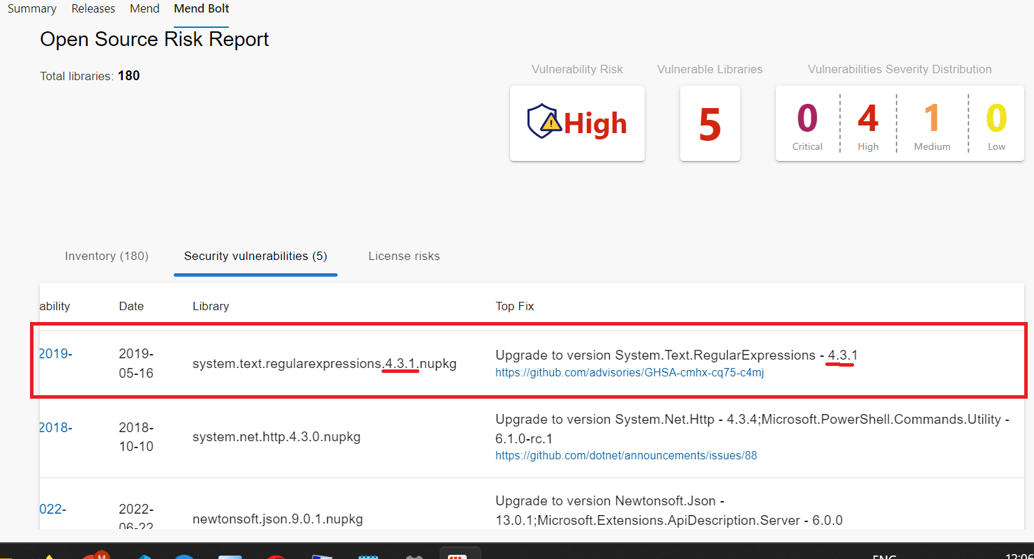 i am running azure pipline with Mend Bolt task to detect old libraries, and i got: