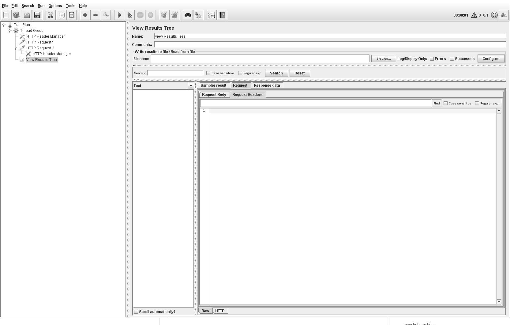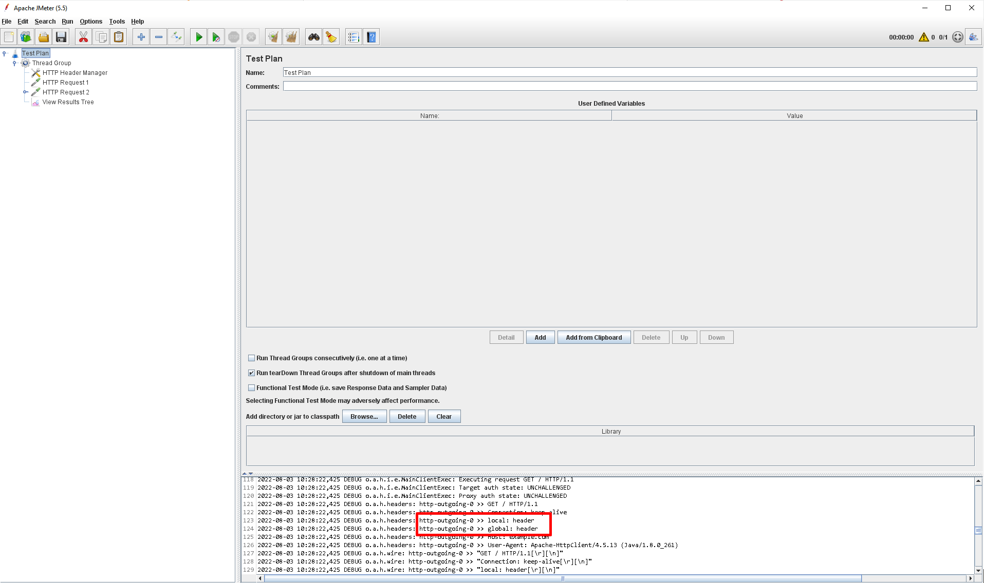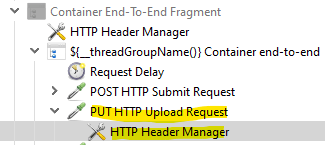 This is where my issue lies. I’ve added an HTTP Header Manager to that particular request, but the header doesn’t seem to get added. There is a Header Manager at the fragment level, that is used to apply generic headers to all requests, but this header manager is just for that request. I was expecting the 2 to be merged, but it looks like no headers are being applied to that particular request.