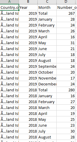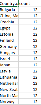 Now I want to continue working with only these countries. How can I copy values from the first dataset based on the countries in the selection?