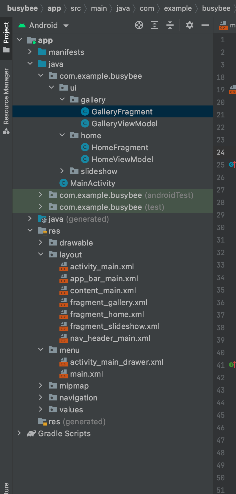 i’m using a template for a navigation menu provided by android studio and i noticed the main activity sets the content view to a root view but I’m not sure which XML file that would be? I’m assuming it might be the XML view that first loads when i run the app (which would be fragment_home.xml) but I’m not sure if there’s any specific code that is placed within an xml or java file for the root view?