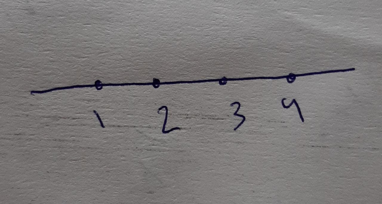 I was expecting the line y=0 or y=1 with dots marking the points (1,0),(2,0),(3,0),(4,0) or (1,1),…,(4,1).