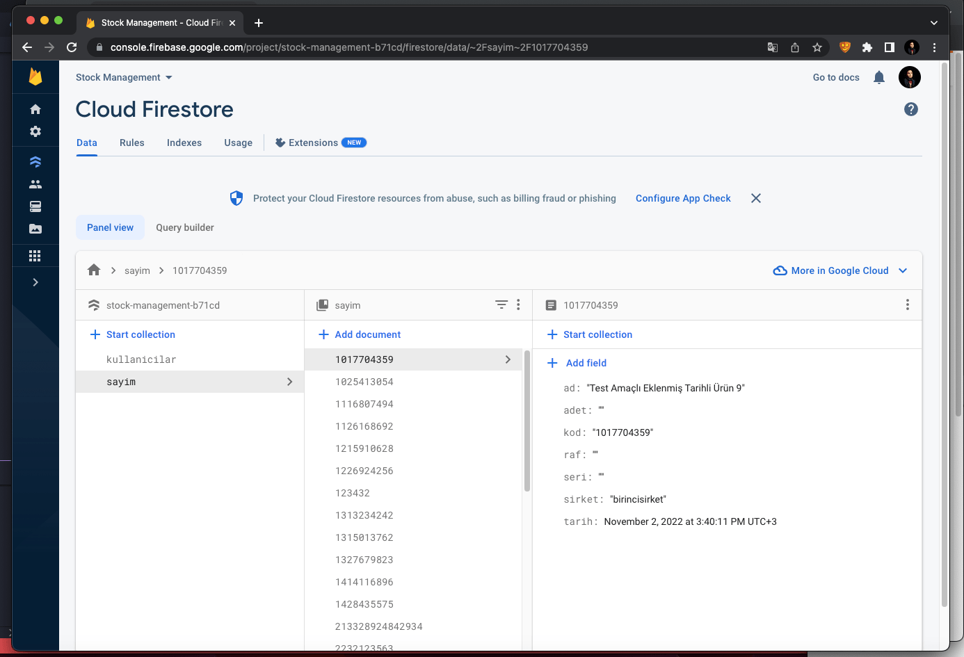 I am trying to develop a stock management application on Flutter. I have integrated Firebase into the app and I can view the data on the app. My collection and documents are as follows: