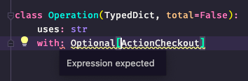 Operation = TypedDict('Operation', {'uses': str, 'with': Optional[ActionCheckout]})