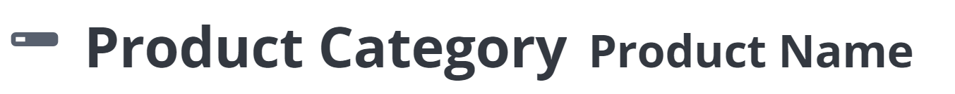 I have an icon on the left that represents a product. Then in H1, I have a product category, and with an h2, I have a product name.