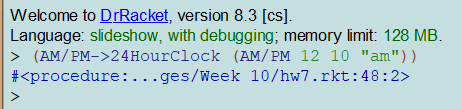 [else (24HourClock (+ (AM/PM-hours time) 12) (AM/PM-minutes time))]))