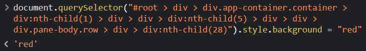 - Go to the console paste the copied path and change the styling using .style.property = "…":
