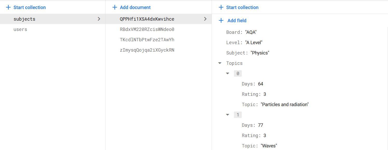 and the structure of the users is (collection) users > (document) user > (collection) subjects > (document) what i want to add