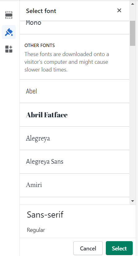 I need to add custom fonts to the Shopify panel.