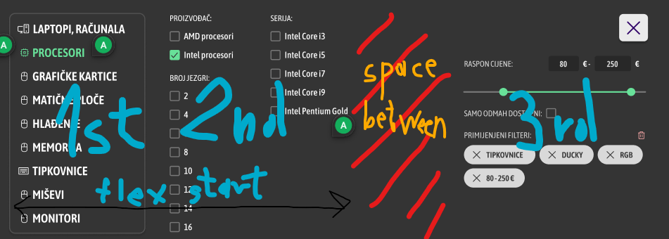 Is it possible to add justify-content: space-between only to 2nd and 3rd child of a div?