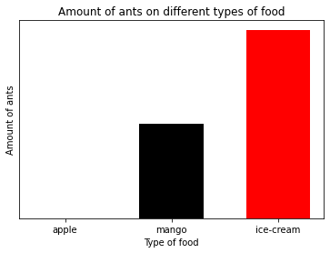 Definition of data set: Amount of ants on different types of food
