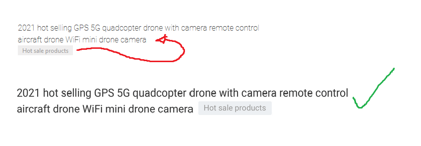 Items.product.name is the main title containing the drone title.
