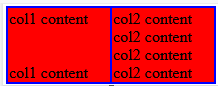 To my knowledge, I’d assume height: 100% would get col1‘s height to take up the space provided, but that isn’t working.