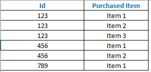 max(case when purchased_item = 'Item 1' then 1 else 0 end) item_1,
