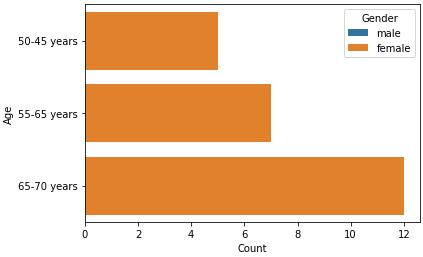 data = {'Age': ['50-45 years', '50-45 years', '55-65 years', '55-65 years', '65-70 years', '65-70 years'],