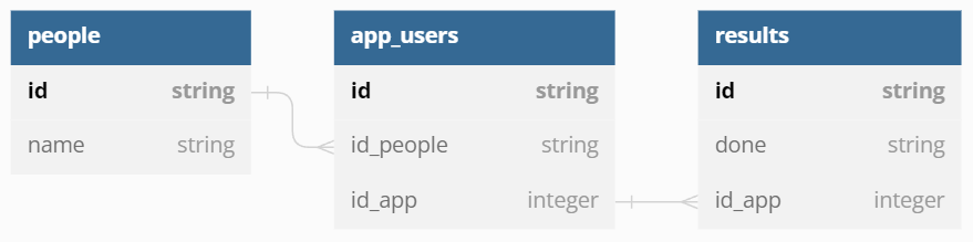 Here we join table app_user to table people, and then join results to previous result.