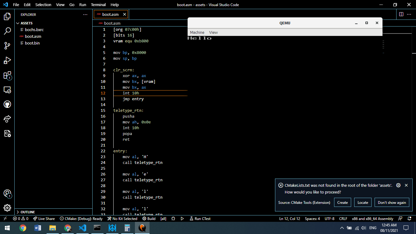 everyone! I’m sharpening my assembly low-level skills and made myself a simple bootloader. I now made some routines and the entrypoint and successfully output a message however, I want to clear the screen so in outputting my message, it comes out clean. I’ve tried making a routine which clears the AX register, stores the content of address 0xb800 to BX then copying or MOVing the contents of the AX register.