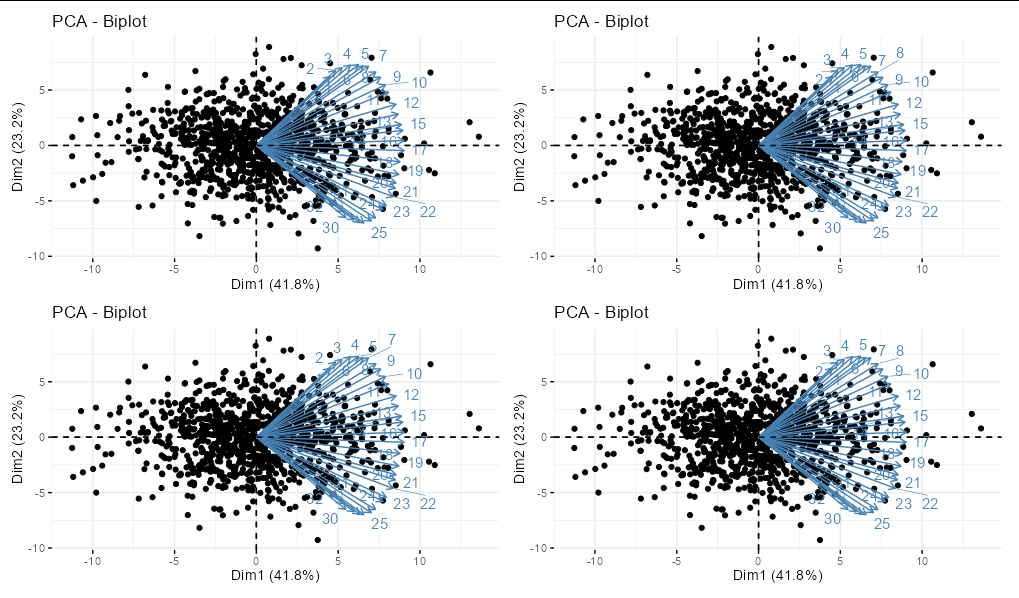 i tried to combine multiple fviz_pca_biplot (factoextra package) plots into one plot using par(mfrow=c(2,2))