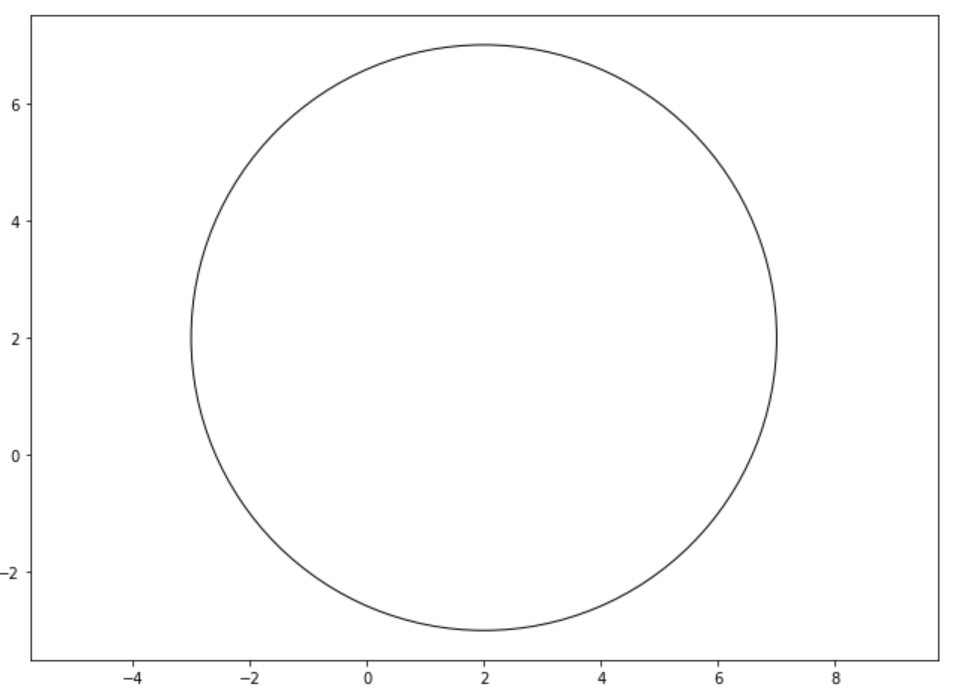 circle1 = plt.Circle((2, 2), radius=5, fill = False)