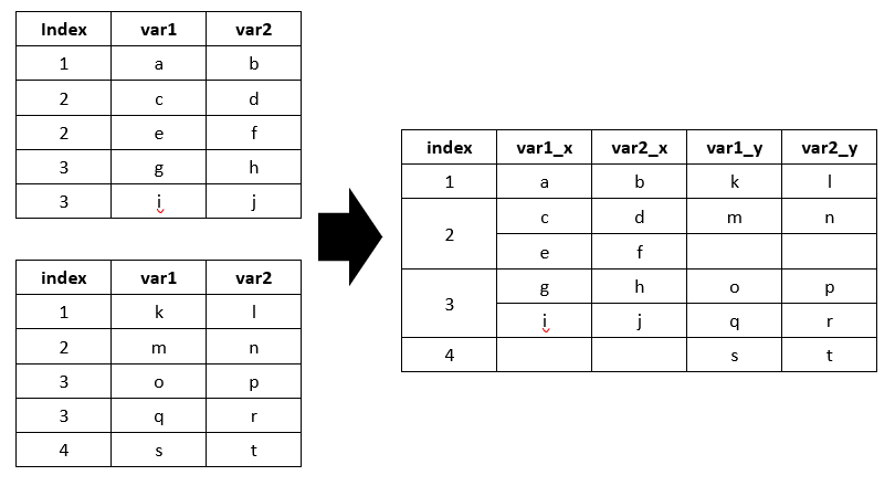 columns=['var1', 'var2'], index=[1,2,3,3,4])
