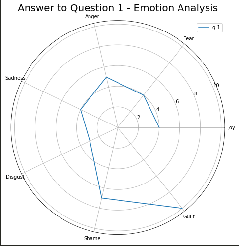 plt.title('Answer to Question 1 - Emotion Analysis', size=20)