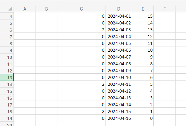 In column D is a date, in column E is an offset, but this is not relevant to the problem.