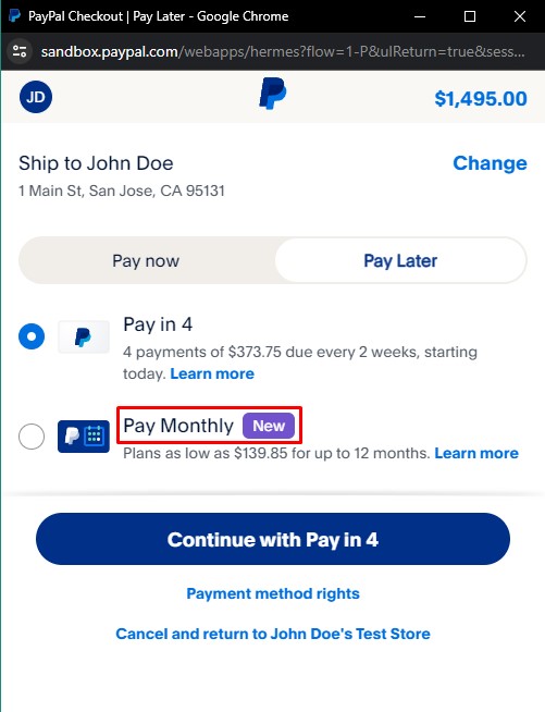 I want to remove the "Pay Monthly" option from the "Pay Later" page and only keep the "Pay in 4" option. Is this possible? I’m using PayPal’s JS SDK for integration.