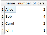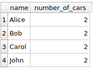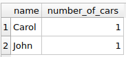 I’d like to see the ‘0’ number in the table next to the two other users without a "Nissan" car, but I can only see non-zero values.
