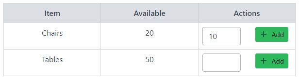 Example: When I press the add button in the Chairs row, 10 should be cleared.