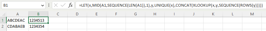 If I have a string like ABCDEAC, I want to encode it like 1234513.