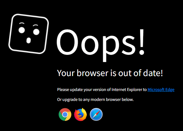 So here is Chrome vs IE. So Chrome works because I manually went there and it won’t redirect anything because it’s not IE.