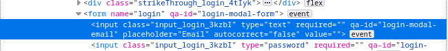 This is an image of inspected code of the website that I try to log in.