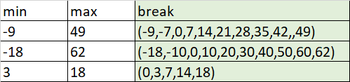 if max<=60, then break includes (0, min, max, and the numbers +/-7 from 0).