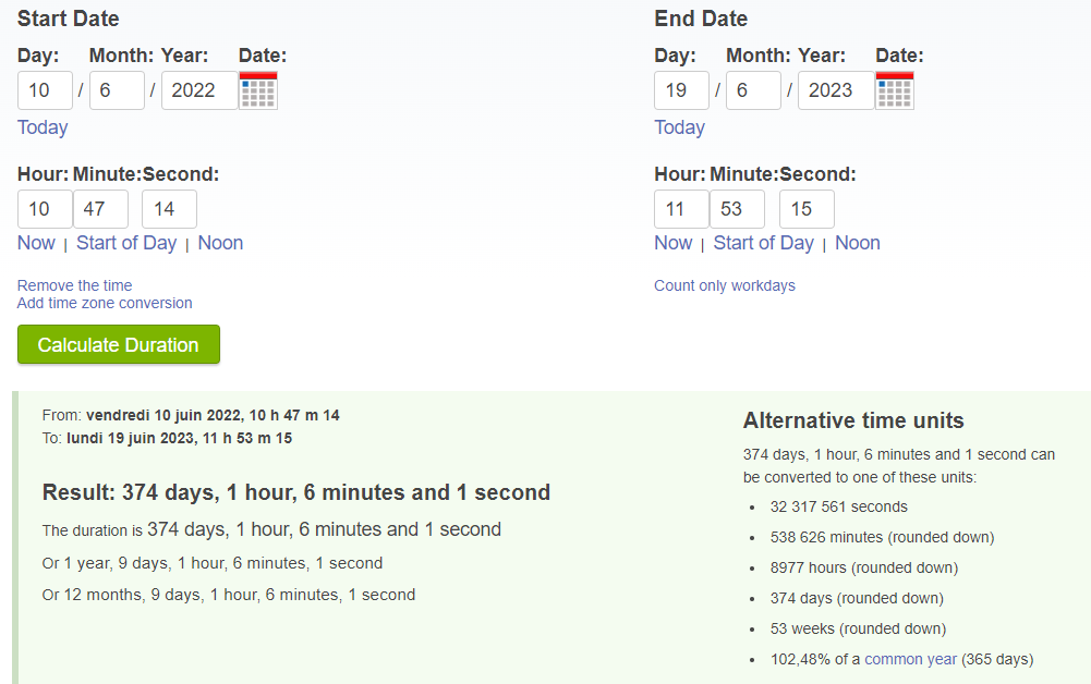 - interval2 incorrectly shows 14 days, when there should be 9 days in a year.