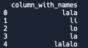 'column_with_names': ['lala :56 javcejhv', lala56 : javcejhv' 'li :lo 7TUF', 'lo','lala :59 lzenvke','la','lala','lalalo'],