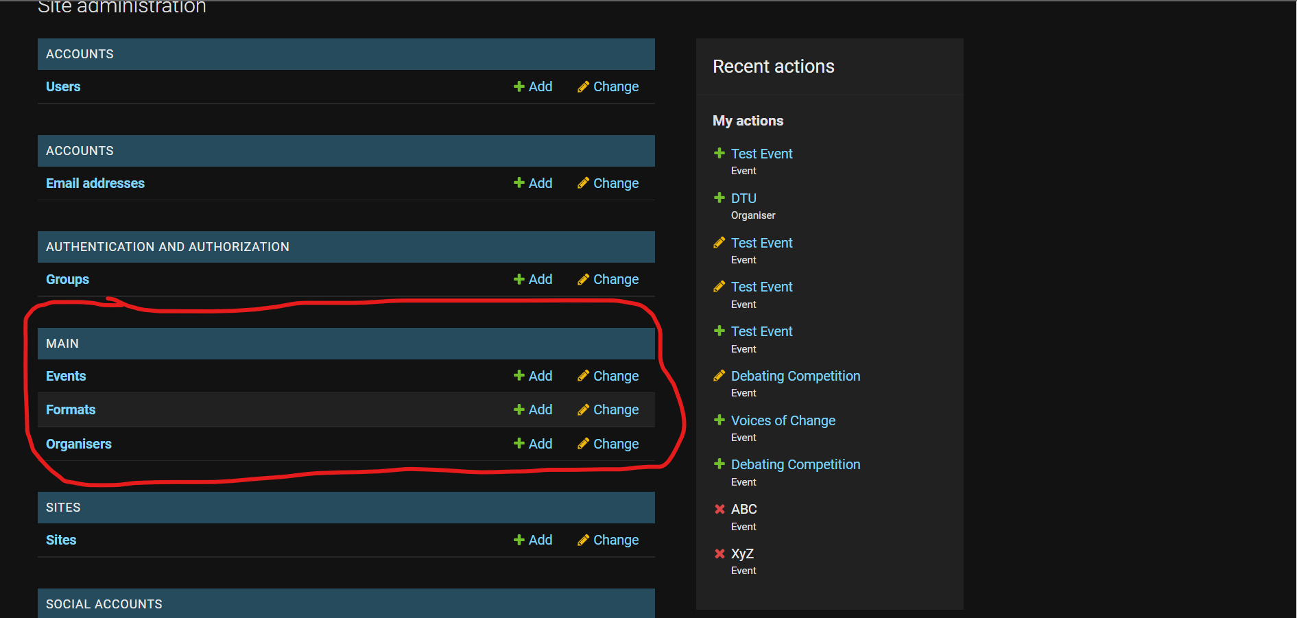 I want users(The content writer) to access only the Main Area(Events, Formats, Organisers) and not the whole thing. I haven’t made any such user as Content Writer as of now. What are the permissions that should be given to that user. Should I make Groups for users(since there are basically 3 types of users as of now, i.e., Admin(Full Access), Content Writer(Limited Access), Basic Users(No access)) or should I just add one/two more variable(s) in my custom user model so that that user can access only the main area of the admin site.