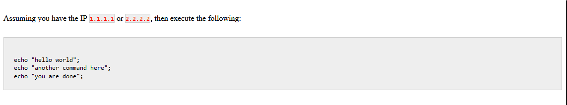 Assuming you have the IP `1.1.1.1` or `2.2.2.2`, then execute the following: