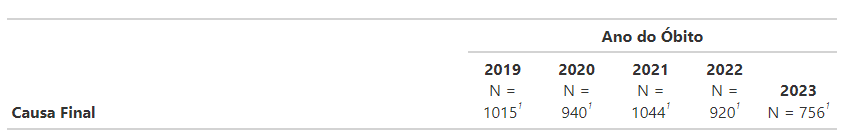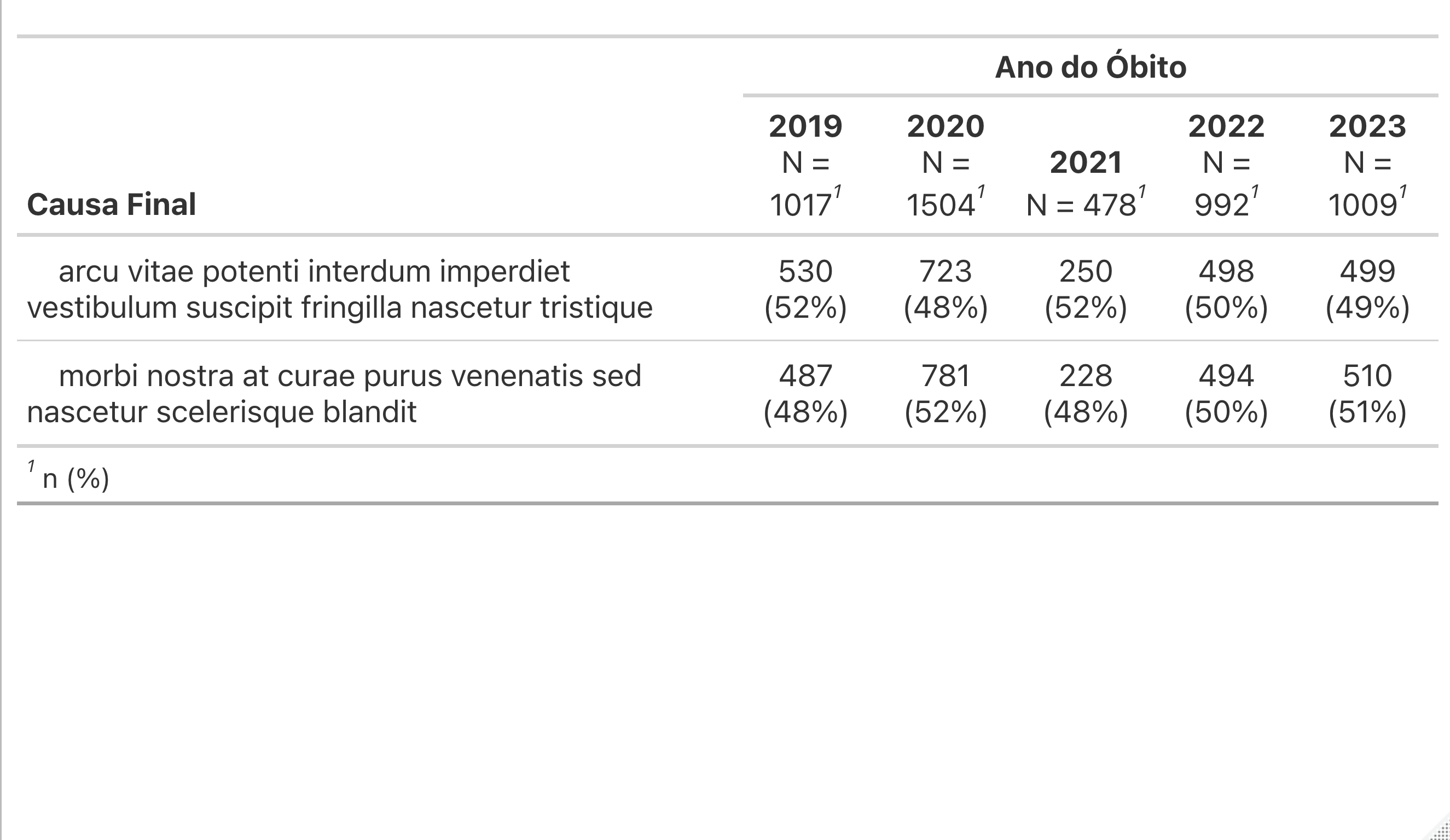 modify_spanning_header(c("stat_1":"stat_5") ~ "**Ano do Óbito**") %>%
