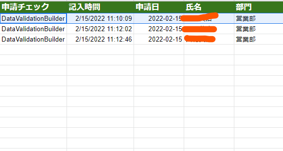 recordsSheet.appendRow([setDataValidation(newCheckbox),new Date(),applicationDate,"name","department","work",address, timeFrom,timeTo , feecost,dailyAllowance,"","","","","","","","","","","",cardmoney,persionalitycost]);