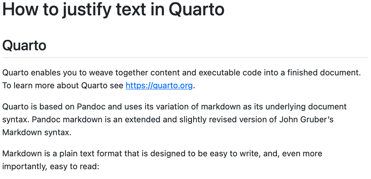 title: "How to justify text in Quarto"