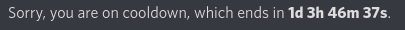You are on cooldown. Try again in 86396.55s.